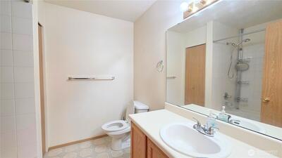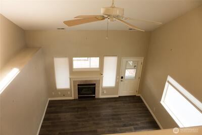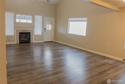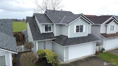 Lakewood charmer! Don't miss this move in ready and impeccably maintained 3 bedroom, 2.5 bath home. Some of the many features of this home include hardwood floors throughout the main floor living areas, newer granite countertops, cathedral ceilings, fully fenced backyard with views, and countless community amenities. Home features a main level primary bedroom with ensuite, a bright two story living room with cathedral ceilings and gas fireplace that flows into an updated open kitchen with eating space- perfect for entertaining. Upstairs boasts a large bonus room/loft. The large covered porch leads out to the level, low maintenance backyard. Look for the Mount Rainier and open green space views from the backyard! Exterior home renovation was completed in 2021 which included new roof and exterior paint. Kitchen refresh in 2021 as well with peninsula island expansion and new granite countertops throughout. Refrigerator was replaced in 2021, dishwasher, washer and dryer was replaced in