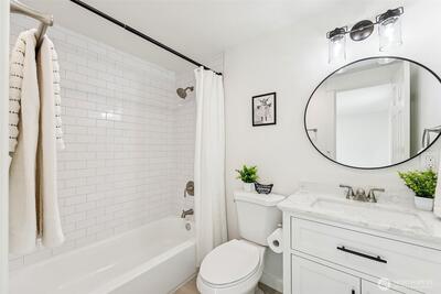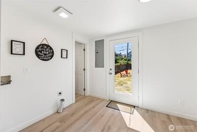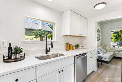 Instant Equity Opportunity in the Heart of Tacoma! Recently appraised at $380K—offering approximately $40K in built-in equity from day one. This beautifully updated Craftsman blends timeless charm with modern finishes and is truly move-in ready! Renovated top to bottom with a new roof, updated electrical panel, double-pane vinyl windows, gutters, tankless water heater, fresh interior/exterior paint and composite decking. Inside features new white cabinetry, gorgeous quartz countertops, beautiful luxury vinyl plank flooring, stainless steel appliances and stylish fixtures throughout. The cozy layout includes a main floor bedroom, a contemporary full bath and a gas stove for warm, inviting nights. Upstairs, the versatile loft serves perfectly as a second bedroom, office, or bonus space. Enjoy an extra-deep, fully fenced lot with alley access—ideal for RV parking, a future ADU, garage/shop with living space, or a spacious backyard for entertaining and fun. A shed with power adds flexi