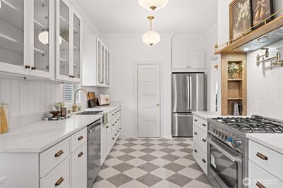 Welcome to this exquisitely restored 1895 Victorian, where timeless architecture meets refined modern living. Nestled along a picturesque, tree-lined street in sought-after Old Town, this distinguished residence offers effortless walkability to Downtown Proctor and the beloved Rosewood Café, all while maintaining a sense of quiet charm and privacy. Thoughtfully curated updates, including a new roof with a transferable 50-year warranty, provide both beauty and peace of mind. The heart of the home is a bespoke kitchen designed for both everyday living and elevated entertaining. Enjoy slow mornings in the custom breakfast nook or create inspired meals in the striking stove alcove, with pot-filler, anchored by a 36-inch gas range. Upstairs, the serene primary suite is a true retreat, featuring a bay window adorned with original stained glass, an elegant nod to the home’s heritage. Indoor-outdoor living is equally enchanting, with inviting spaces to unwind on the front porch or host ga