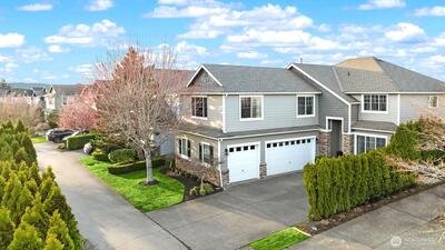 Located in the highly sought-after Snoqualmie Ridge community, just moments from the golf course, this home puts lifestyle, panoramic mountain & valley views, and convenience right at your doorstep. Beautifully updated 4-bedroom home with a spacious bonus room, designed for both comfort and style. Step through the impressive new 8’ entry door into soaring ceilings and light-filled formal living spaces, complete with a versatile office/den. The fully remodeled kitchen shines with white cabinetry, slab quartz countertops, and a seamless flow into the main living areas, all anchored by rich hardwood floors. Modern touches like designer shiplap accents bring a fresh, on trend feel buyers love. Enjoy mountain views from the expanded stamped concrete patio, featuring a tranquil water feature, perfect for entertaining or unwinding at the end of the day. Additional highlights include A/C, a new furnace, and a 3-car garage for added convenience. Move-in ready with thoughtful updates throu