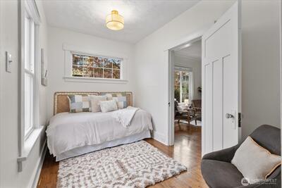 Nestled on a prime corner lot in the heart of Sunset Hill, this charming light filled bungalow with a coastal vibe is as inviting as it is perfectly located. Perched above the street for privacy, look out the front window at the beautifully blossoming Purple Leaf Plum Tree. Enter the warm, spacious living/dining room area and feel right at home. With two cozy bedrooms, a bathroom and kitchen on the main floor and a versatile bonus room and tons of storage in the basement, it’s the ideal blend of comfort and functionality. Step outside to your fully fenced backyard oasis, perfect for planting flowers and veggies or entertaining friends. You are just moments from the breathtaking Sunset Hill Park, the scenic Burke-Gilman Trail, and the sandy shores of Golden Gardens. Neighborhood restaurants abound: Sunny Hill, Bakers and Larsens for your favorite pastries. Stroll a little further to downtown Ballard, where the Sunday Farmers Market, buzzing restaurants, lively bars, and boutiqu