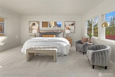 Welcome home to a sanctuary of comfort and style in the Issaquah Highlands. Perfectly positioned near Central Park, this home radiates pride of ownership with recent professional updates including fresh interior paint, new carpet, and refinished hardwood floors. The open-concept main floor is anchored by a gourmet kitchen and a private den, formal living and dining spaces and a large great room overlooking the very private and fully fenced backyard. Upstairs, the primary retreat offers peaceful greenbelt and mountain views, while the large bonus room adds incredible flexibility for theater or playroom. 3 large guest rooms up with an additional bonus space for homework or play. You will enjoy total confidence in the home's infrastructure thanks to a brand-new roof, new furnace, and new Central A/C. The exterior is equally impressive, featuring a quiet courtyard off the kitchen - perfect for barbecues, a 3-car garage, and a wonderful, flat backyard perfect for entertaining. Situated on