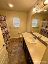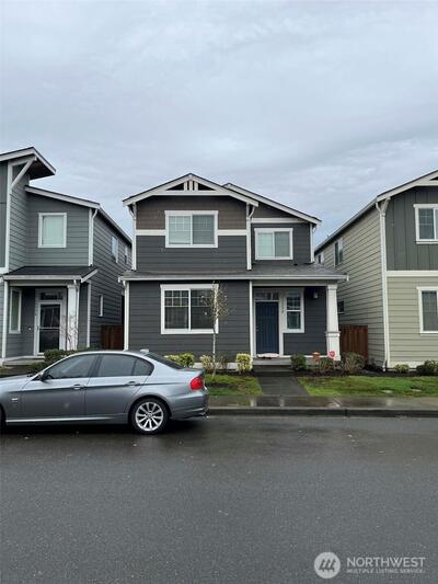 Home located in Puyallup’s gated community, Emerald Pointe, in Sunrise. Built in 2017 with 2334 sqft, this spacious 4 bedroom, 2.5 bath home with Bonus Room/5th bedroom, has space for everyone. Primary lives large with luxury 5-piece ensuite and walk-in closet. You will love the open floor plan that features a large kitchen with granite, breakfast bar pantry and tile backsplash. Also, office with barn door and dining room. Let the HOA maintain your front yard landscaping and irrigation. Community offers parks, trails, playfields, sport courts, and picnic shelters. Home also offers: A/C, extensive laminate wood flooring, soaring 9’ceilings, covered patio, fenced yard and is close to everything!