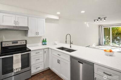 LOCATION + PRIVACY = GREAT INVESTMENT! Desired Waterford, gated and private END UNIT—this Waterford condo is priced to sell. Step outside your door through the secure gated entrance and you’re just ACROSS THE STREET from fine dining, shopping, and one block from Juanita Beach, parks, and trails. Hop on the trail for a scenic bike ride or stroll to the waterfront. This lower-level end unit is ideal for your pet, surrounded by beautiful landscaping and mature trees, offering exceptional privacy with no one peering into your windows. Enjoy morning coffee on your west-facing private patio, basking in the sunshine. Freshly painted with new carpet, the home features a beautiful kitchen with eating bar, quartz countertops, stainless steel appliances, and a cozy fireplace. Light and bright with only four steps to entry. Plenty of parking for all your visitors. PLUS: covered deeded parking, newer roof and siding, and an overfunded HOA—making this an incredible opportunity for homeowner