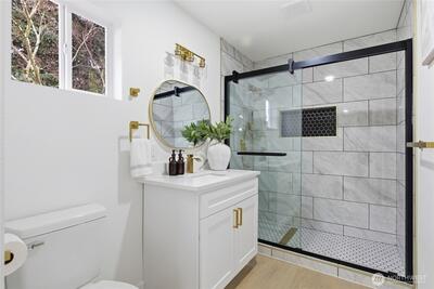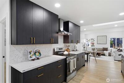 Ideally located near Lake Washington and just 5 minutes from downtown Seattle, this stunning 2-bedroom, 2-bath home with a bonus room offers the perfect combination of comfort, style, and convenience. Thoughtfully designed with a unique touch of luxury, the home features an open-concept kitchen that flows seamlessly into the main living area, creating a bright and inviting space perfect for both everyday living and entertaining. Large windows bring in an abundance of natural light throughout the home, enhancing its warm and airy feel. The lower level offers excellent flexibility for additional entertainment space, guest quarters, a home office, or even potential rental income. Outside, the backyard is a true retreat, offering privacy and the perfect setting to relax, unwind, or host gatherings. This home is a rare opportunity to enjoy a versatile layout, beautiful finishes, and an unbeatable location.