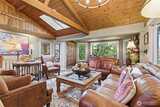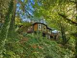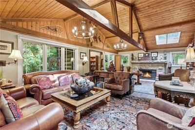Step into the timeless charm of this log-sided home, perfectly perched above a year-round stream and surrounded by a canopy of trees. Thoughtfully sited to capture wooded views from almost every window, this home blends rustic character with inviting warmth. Inside, old world charm and beauty unfold with open-beamed ceilings, a dramatic rock fireplace, and warm details that create a cozy yet elegant atmosphere. Picture evenings gathered around the fire, mornings with coffee on the back deck, and afternoons exploring your wooded parcel. The sound of the stream and the whisper of the trees set a peaceful rhythm, while the home’s design celebrates both comfort and nature. The detached garage includes an attached sanctuary room, ideal for a studio, home office, or peaceful retreat. A rare opportunity to own a one-of-a-kind property that feels like a woodland getaway yet remains close to town conveniences. This home offers a lifestyle defined by tranquility and is a place where rustic c
