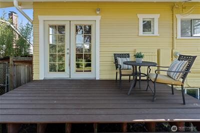 Charming Craftsman in the desirable 6th Ave District! Situated on a large corner lot, this 3-bedroom, 1-bath home blends classic character with thoughtful updates. Fresh interior paint and recently painted exterior (2025) give the home a crisp, move-in-ready feel, while major system upgrades—including a newer roof, sewer line, AC/heat pump, and furnace—offer peace of mind. Inside, you’ll find three spacious bedrooms, a beautifully remodeled bathroom, and a bright kitchen featuring barstool seating off the peninsula—perfect for everyday living and entertaining. Natural light pours through large windows, highlighting the original fir and hardwood floors throughout. French doors off the kitchen open to an expansive deck and fully fenced backyard, creating a private outdoor oasis complete with garden space. The unfinished basement provides excellent potential for added square footage or storage. A standout feature is the detached garage/building (437 sqft), upgraded with a ne