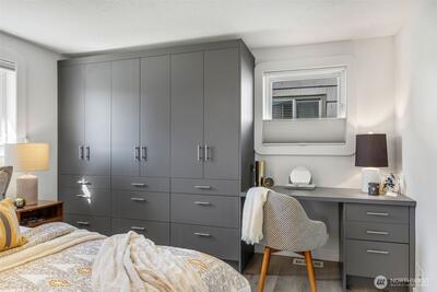 This delightful home, extensively remodeled in 2019, is perfect for those with a passion for hobbies. It boasts a heated & air-conditioned 600+ sqft outbuilding workspace—ideal for a carpenter, artist, fitness enthusiast,work-from-home...!?! Inside the one-level main home, you'll find custom touches throughout, including tremendous built-ins in the primary bedroom that also offers a beautiful, ensuite bathroom. Sliding glass doors from dining area open to a level, fenced backyard featuring two large pavered patios, fig trees, multiple raised vegetable beds, roses, blueberries, raspberries, strawberries, and so much more! The spacious front yard showcases native plants sustained by a rain garden retention area. Parking includes a 2-car driveway in front of the attached garage, which is currently configured for ample storage. This home offers the perfect blend of productivity and creativity and the warmth that perfectly matches the welcoming, well-maintained street it calls home.