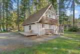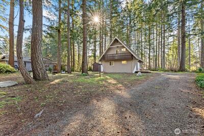 Tucked beneath a canopy of evergreens in the gated Lake Holiday community, this charming chalet feels like a storybook escape. You will be absolutely shocked as it feels much larger than its 900 sq ft - featuring 1 bedroom and ¾ bath on the main floor, with two additional bedrooms + office upstairs. Enter to a remodeled kitchen, and open living room with cozy wood burning fireplace for chilly evenings. Set on .26 acres with mature trees and paver paths leading to a fire pit, it’s perfect for relaxing on a summer evening or hosting friends. Plenty of room for an RV or future garage/shop build, with a current storage shed. With neighborhood lake access, tennis courts, hiking trails, and a trail to Stanisberry Lake, plus STR-friendly HOA, this is an ideal full-time home, weekend escape, or Airbnb investment opportunity.