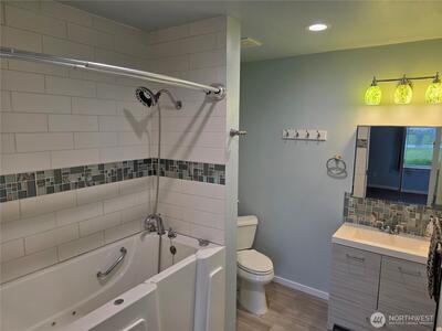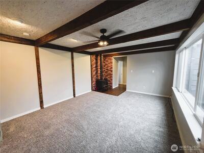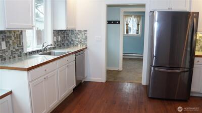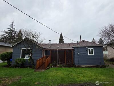 Discover a rare opportunity in the heart of Enumclaw! This charming 3-bedroom, 2-bath home has never been on the market and blends timeless character with modern updates. Originally built in 1945 and thoughtfully remodeled in 2018, it offers the perfect mix of vintage charm and contemporary comfort. Step inside to find fresh interior paint, brand-new carpet, and a warm wood-burning stove—perfect for cozy Pacific Northwest evenings. The large eat-in kitchen features newer cabinets, under-cabinet lighting and a cozy sitting window, creating the perfect space for casual dining and relaxing mornings. The primary suite includes a walk-in sit-down shower/tub for added comfort and accessibility. The versatile converted garage offers 285 Sq Ft of endless possibilities as a shop, craft room, or home office. Outside, enjoy the convenience of dedicated RV parking space—ideal for adventurers or extra storage needs. Roof is approx. 10 years old. Upgraded Andersen windows and wall heater was rec