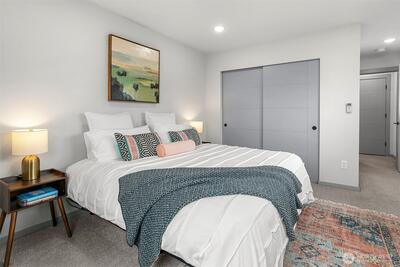 Located in the heart of Loyal Heights, this well-maintained townhome offers comfort, flexibility, and an ideal neighborhood setting. The thoughtful floor plan features living, dining, and kitchen spaces on the main level, with light-filled bedrooms on the second and third levels, each with its own full en suite bath. The layout is well suited for a variety of living or work-from-home arrangements. Lovingly maintained by its owners since it was built in 2023, this home is an exceptional value in Northwest Seattle. Natural light, a sunny yard, and an off-alley parking spot add to its appeal. Ideally located just blocks from Loyal Heights favorites including Larsen’s Bakery, Cafe Munir, and Beast & Cleaver. Welcome to your new home!