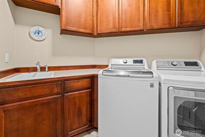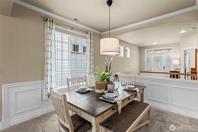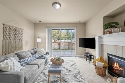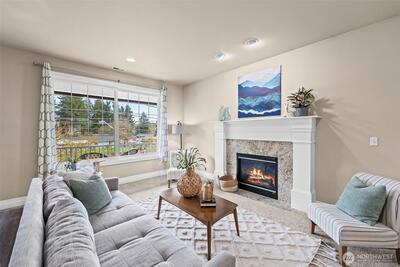 Located in the highly sought after University Place School District, this spacious home lives like a rambler with the primary suite, office, and laundry all on the main level, offering both convenience and everyday ease. Beautiful curb appeal and a 2 car garage welcome you home, while inside, soaring 9 ft ceilings, hardwood floors, new carpet, fresh interior paint, and AC create a bright, comfortable, and elevated feel throughout. The open concept layout is designed for connection and entertaining, featuring a living area that flows seamlessly into the kitchen with stainless steel appliances, granite counters, a formal dining space and breakfast spot. Step out onto the deck and enjoy your morning coffee. Extra large primary ensuite with 5 piece bath and walkin closet. The lower level offers a generous second living area with gas fireplace, three additional bedrooms, and a full bath, ideal for guests, multi generational living, or giving everyone their own space. Plus, over 300 sq ft of