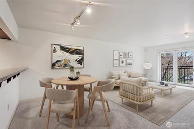 Welcome home to your refreshed and friendly urban oasis in the heart of Seattle’s iconic Queen Anne! This beautifully updated 1-bedroom, 1-bathroom condo features a versatile bonus den that is perfect for your home office or a cozy guest nook. You’ll love the "brand-new" feel of the space, featuring a crisp, freshly painted interior, plush new carpeting, and a kitchen outfitted with gleaming new stainless steel appliances. Life here is all about ease and enjoyment, from the secure phone-app building access to the convenience of your own dedicated garage parking space. When you aren’t relaxing at home, you can break a sweat in the on-site gym or head up to the rooftop terrace to soak in those world-class views of the Seattle skyline. The location is a true walker’s paradise; you are just steps away from the energy of the Seattle Center, concerts at Climate Pledge Arena, and the charming cafes and boutiques of Uptown. Whether you’re catching a sunset at Kerry Park or grabbing b