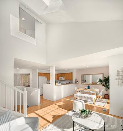 NEW PRICE! Fabulous 3-bedroom townhome at sought-after English Cove! The perfect location just moments from Marymoor, Microsoft & downtown Redmond + the best schools! Fall in love with the sunlight pouring through large windows, double volumn ceiling, open floor plan, spacious kitchen, and hardwood floor throughout! Super functional floor plan with luxury-size primary suite and guest suite on top, and versatile 3rd bedroom/office on Main. Watch fall colors roll in from your private deck, play pickleball on the community courts, or stroll over to beloved Marymoor for outdoor fun. Fantastic community with caring neighbors, and the home enjoys a peaceful, quiet spot. 5-star dining, groceries & more are all minutes away!
