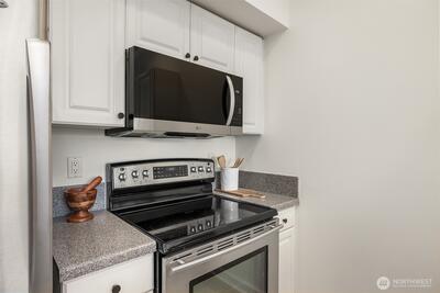 Quiet park-view 1-bedroom condo in the heart of downtown Kirkland. This move-in ready home offers a rare combination of walkable downtown convenience and a peaceful outlook, with updated wood-look LVP flooring, newer kitchen appliances, and abundant natural light through bay windows. Spacious bedroom with en suite bath, in-unit washer/dryer, and a layout that lives comfortably. Additional features include secured garage parking, private storage, and keyed elevator access. Just steps to Kirkland’s waterfront, restaurants, coffee shops, and boutiques, with easy access to I-405 and SR-520. Walk Score of 94. A strong opportunity for a buyer seeking a quiet downtown Kirkland home with excellent value.