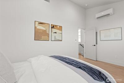 Nestled just steps from Loyal Heights Playfield, this charming 2 bed, 1.5 bath home welcomes you with warmth, light, and thoughtful design. The open-concept main floor features a stunning chef’s kitchen with a 36" range, oversized island, and elegant finishes—perfect for cooking, entertaining, or simply gathering with friends. Natural light pours through large windows, enhancing the bright, airy feel throughout. Upstairs, vaulted ceilings add space and serenity to both bedrooms. A cozy deck invites moments of relaxation year-round. With dedicated parking, 1,066 sq ft of smartly used space, and proximity to Ballard’s favorite coffee shops, restaurants and parks, this home blends modern comfort with neighborhood charm.
