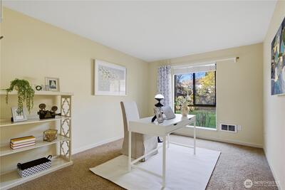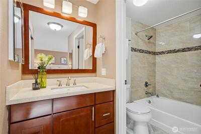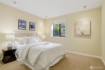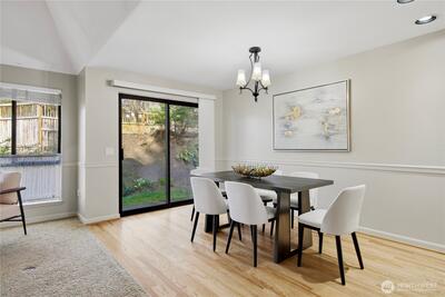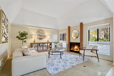 Experience the best of West Bellevue in this refreshed 3 bedroom townhouse in the coveted Towne Square community. Recently updated with fresh interior paint. This bright and airy home features soaring vaulted ceiings, gleaming hardwoods and a cozy wood-burning fireplace. The premary suite offers a spa-like retreat with a soaking tub and dual closets, while the versatile lower-level room(den) prodes the perfect space for a home office or guest quarters. Rear for downtown living, this unit included an oversized attached 2 car garage with ample storage. Just steps from Bellevue Square's world-classs dining an shopping, and located within the top-tier Bellevue School District, this move-in-ready home offers an unbeatbale lifestyle complete with community amenities like a pool, sauna, and club house.
