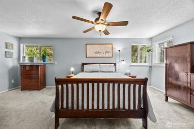 Welcome home to a wonderfully laid-out property filled with comfort and thoughtful updates. Enjoy the cozy glow of the wood-pellet stove, unwind in the spacious primary suite, and appreciate the walk-in closets in every bedroom. The home features new flooring, updated bathrooms, and a newer covered deck that lets you relax outdoors in any season. A brand-new shed adds extra storage, and the generous 11,174 sq ft lot provides privacy in a peaceful, established neighborhood with no HOA. Conveniently located near JBLM, shopping, and everyday amenities, this home truly has it all.