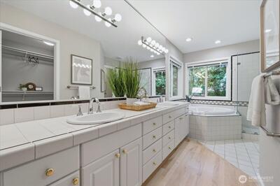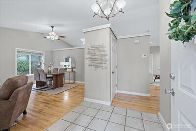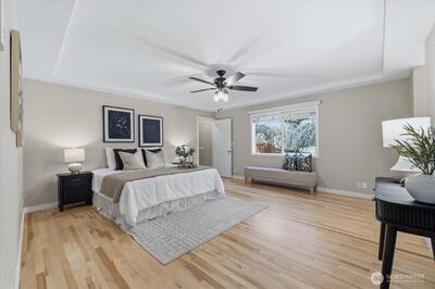 First time on the market, this Fox Island property offers two homes on 1.25 acres designed for long-term living and generational longevity. Tucked off Kamus Way, a circular, valet-style driveway welcomes you in past mature landscaping and lush grounds, creating a peaceful sense of arrival. Positioned across the property, the two single-story residences balance connection with independence — ideal for multigenerational living, guest accommodations, or rental opportunities. The main rambler offers 4 bedrooms, 2.5 baths across 2,126 sq ft. Vaulted ceilings & skylights fill the home with natural light, while two living areas, along with the dining room and kitchen, create an easy flow to the backyard retreat. The primary suite adds comfort with a 5-piece en-suite bath and two expansive walk-in closets. Central heating & A/C, plus a generator, provide additional peace of mind. The attached 3-car garage includes a heater, jet filtration system & air compressor station — ideal for
