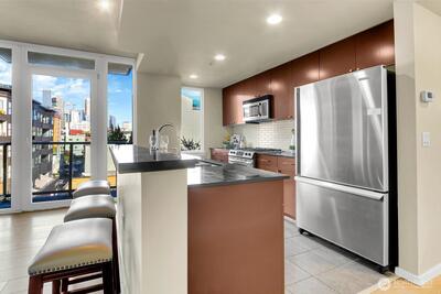 A stunning urban retreat offering both style & convenience. This meticulously designed condo features sleek modern finishes & panoramic views of the vibrant Seattle skyline. Enjoy an open-concept living area perfect for entertaining, a gourmet kitchen complete with stainless steel appliances, spacious countertops, & ample storage. The spacious bedroom & the updated bathroom features contemporary fixtures & luxurious feel. This unit provides a high-end lifestyle with in-unit laundry, private parking, and secure building access. Located in the highly sought-after neighborhood, just steps from top-tier restaurants, shopping, entertainment, & public transportation. This is a rare chance to own in one of Seattle's most desirable areas.
