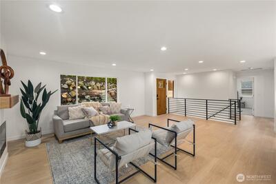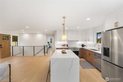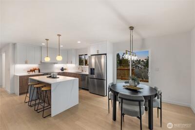 Step into this turn-key ready Magnolia gem! The main level features an inviting open-concept kitchen and dining area with a large deck off the kitchen with views of downtown Seattle, quartz counter tops with new cabinets, custom 36inch range & SS appliances. All new laminate flooring throughout and carpet in the bedrooms, gorgeous tile in all the bathrooms. Lower level offers Loft/bonus room with a wet-bar, full bath & 2 additional bedrooms, All new Milgard windows, deck, plumbing, electrical, heating & roof. located just minutes away from parks, coffee shops, shopping centers and more.