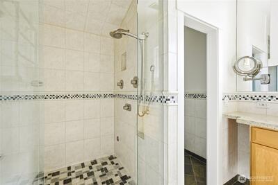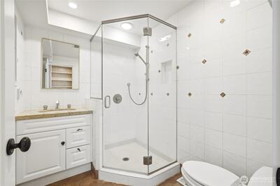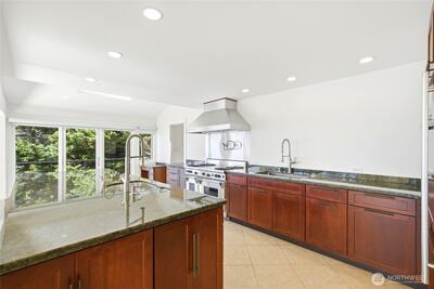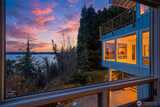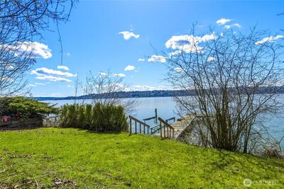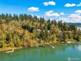 Step down toyour own private waterfront and enjoy unobstructed 270° lake views with a private 100-foot dock. This High bank gorgeous home is fully remodeled and ready to welcome you. Home showcases a professional kitchen with high-end appliances, including a Wolf French cooking range, Miele steam oven with warming drawer, a four-burner range, private wine cellar, and custom cabinetry with pull-out storage. Modern design features floating stairs, expansive windows, brand new blinds, custom fireplaces and counters, heated floors, fresh interior and exterior paint, updated electrical, new furnace, heat pump, and metal roof. The upper primary bedroom features an en-suite with separate closets, a steam bath, heated floors, a private patio, and unobstructed lake views. The lower level offers direct access to the mature garden where bald eagles are often seen. Walk down to your own waterfront or hop in your own boat. Located within a top school district. Very Rare opportunity to see the f