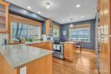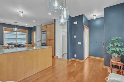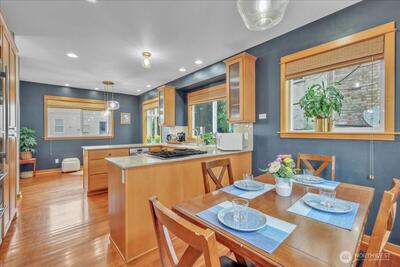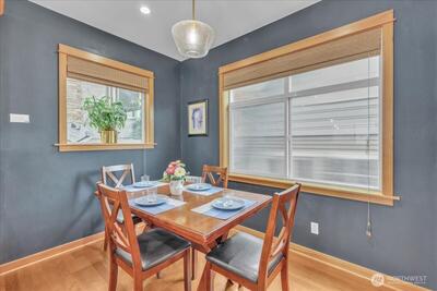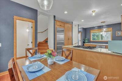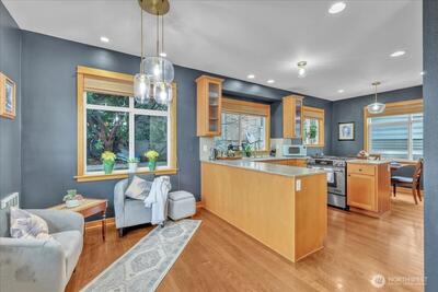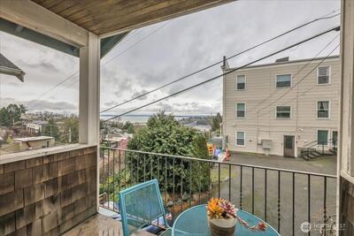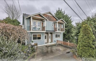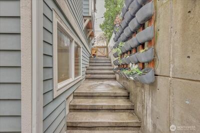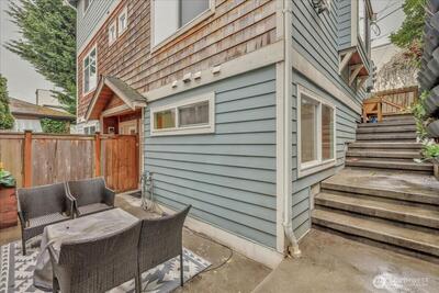 Perched in the heart of West Queen Anne, this tucked-away townhome captures sweeping views of Elliott Bay and Puget Sound while offering a sense of privacy just off 10th Ave W. Sunlight pours through the home, highlighting warm finishes and creating an inviting escape year-round. The top floor is a true showstopper—an open, light-filled retreat with a spa-like ensuite, perfectly suited as a primary suite or an elevated living space, all framed by stunning water views. French doors open to a covered balcony, inviting in fresh air and sunshine in every season. On the main level, a modern kitchen anchors flexible spaces ideal for dining, entertaining, or working from home. Below, a serene bedroom flows out to a private patio—perfect for relaxed evenings or intimate gatherings. Enjoy the ease of alley-access parking, a garden setting, and the peace of a dead-end street. With a café, breakfast spot, and spa just half a block away—and dining, shopping, and transit close by (Walk Score