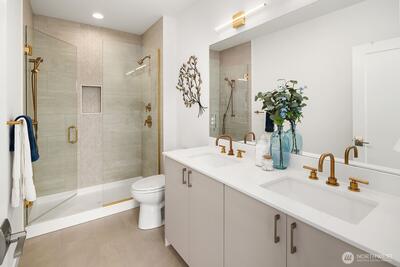 Welcome to your urban oasis in the heart of downtown Bothell! This three bedroom townhome has the perfect blend of modern elegance and city convenience. The main floor boasts high ceilings with an open floor plan leading to the kitchen with quartz slab counters, stainless steel appliances, and plenty of cabinet space! At the end of the day, retire to your primary suite with spa like ensuite bath. Not only that, two more bedrooms, two full baths, air conditioning, and a large two car garage meet your every need! Just when you think it can't get any better, a massive rooftop deck to entertain everyone! Enjoy a life right in the middle of it all - shopping, restaurants, parks, top rated schools and the library. Have it all!
