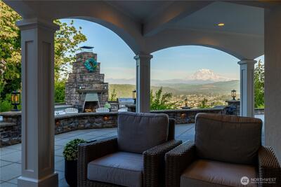 Welcome to a truly remarkable legacy property that is a generational treasure. Incredible unobstructed views of Mt. Rainier and territorial views of the Orting Valley are outstanding. With over 4500 sq. ft. of luxury living, this 4+ bed, 4 bath home has exquisite finishes at every turn. Chef’s kitchen boasts of Sub-zero fridge, Wolf appliances & large center island. Custom features include: coffered vaulted ceilings, marble flooring, lit wine rack, workout room, golf simulator room (prepped and ready), 3 car garage, 3 bay detached garage + more! Grand viewing areas on the main terrace & upper balcony are absolutely stunning. With gated access at neighborhood entry and at the home, the security and privacy of this property is unmatched. One of the most spectacular luxury mountain view homes you will ever see! Call today for a private tour and start your journey in making this private paradise your very own treasure.