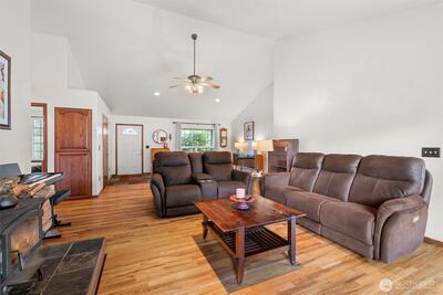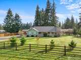 Immaculate rambler in the desired equestrian gated community of Whitewater Estates. This move in ready 3 BR, 2 bath home has a spacious kitchen, walk in pantry, solid oak cabinets, & oak hardwood floors throughout. Spacious living room and dining room w/lots of windows, vaulted ceiling, and woodstove. Kitchen w/skylights that opens to secluded backyard perfect for entertaining. Large garden and fire pit. Or relax on the large covered front porch. Spacious primary with ensuite w/garden tub, and walk in closet. Large laundry room with half bath. Easy commute to JBLM east gate and shopping. Community features include trails, horse arena and river access. Current owners have put in $40K+ of cedar fencing fully fencing and cross fencing property. Beautiful gated community. This is a must see!