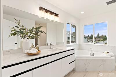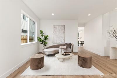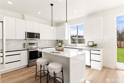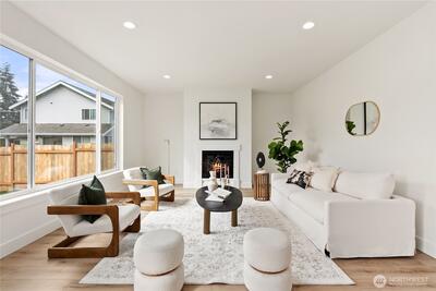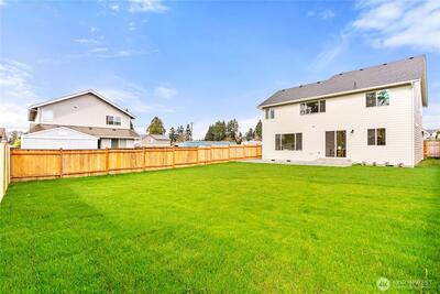 Beautiful new construction home tucked away on a quiet dead-end street in Tacoma! This spacious 2,493 sq ft residence offers 4 bedrooms plus office/bonus room, 2.5 baths, and 2 car garage. Enjoy 9 ft ceilings, abundant natural light, and upgraded carpet with premium pad. The stunning kitchen features modern cabinetry, full tile backsplash, large island, all appliances included, and a generous pantry. Living room and bright open family room with a cozy gas fireplace.Upstairs you'll find a flexible loft and bonus room, ideal for media, play, or workspace. The primary suite offers a true retreat with tiled bathroom floors, soaking tub, separate shower, and walk-in closet. Main bath also features tile flooring.Covered front porch and beautifully landscaped front and backyard, complete with a back patio and full concrete walkway for easy access. Fully fenced yard provides privacy and functionality. Built with upgraded insulation for efficiency and comfort year-round. No HOA. Convenient Taco