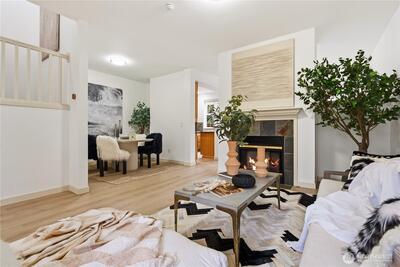 Step into this beautifully remodeled townhome in the highly sought-after Rivertrail community, right in the heart of Redmond—where comfort, style, and convenience come together. Sunlight pours through the home, highlighting the brand-new interior paint, all-new flooring throughout, and fresh new carpet that create a bright, clean, move-in-ready atmosphere the moment you walk in. The welcoming entry opens to a bright living room featuring a cozy gas fireplace and abundant natural light. The kitchen is updated with new stainless steel appliances. Step outside to your private covered patio surrounded by lush greenery—a peaceful space to enjoy morning coffee or unwind in the evening. Upstairs, the spacious primary suite feels like a retreat with soaring vaulted ceilings, a walk-in closet, and a beautifully remodeled primary bathroom designed for comfort and relaxation. It also includes the convenience of electric car charging, making it ideal for modern living. The location truly eleva