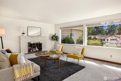 This charming single-story home in North Hill with 3 bedrooms and 2 bath sits on a generous, flat lot on a quiet dead end street. Enter this freshly painted home and enjoy the spacious living room featuring a lovely brick, gas fireplace. This room flows into the dining area adjoining the kitchen which has plenty of cabinet and counter space. The open family room has a skylight which fills the home with natural light. The primary bedroom is en suite; the two additional generously sized bedrooms have ample closet space and share a second full bath. Oversized laundry room has plenty of storage space and is located next to the garage making it perfect for double use as a mudroom. The quiet, fully fenced back yard with mature landscaping and patio is perfect for entertaining or enjoying morning coffee. The expansive, west facing flat front yard is open and flooded with sunlight. This prime location is near the Des Moines waterfront and downtown Burien for you to enjoy shopping, dining and t