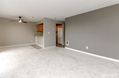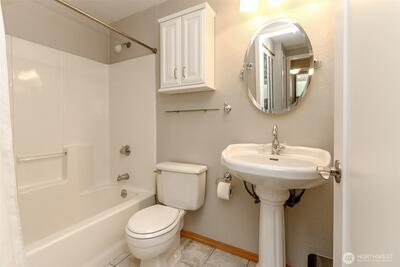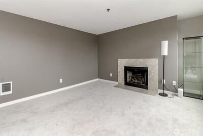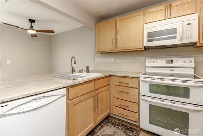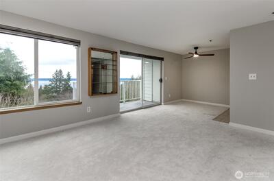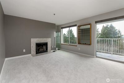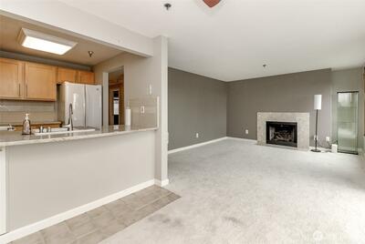 Sweeping Puget Sound view from this nicely updated two bedroom condo. Updated unit has well appointed kitchen, with neutral cabinets and granite counters throughout. Kitchen and dining room overlook view, and open to living room with fireplace. Great location, easy access to freeways, and shopping.