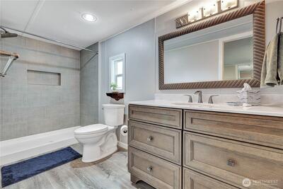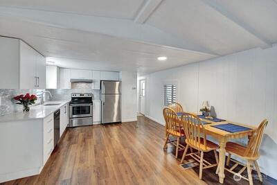 Great opportunity to be part of the Friendly Village community. This terrific remodeled 2 bedroom, 1.5 bath 1983 manufactured home features stainless steel kitchen appliances, quartz countertops, remodeled cabinets & flooring and attractive white shutters on double pane windows. The large covered front deck looks out to the landscaped corner lot. This home is in excellent condition. The community clubhouse has a kitchen, library, pool table, exercise room, a big multi-purpose room and the on-site park manager's office. There's a seasonal heated pool, doggy park and a scenic creekfront covered bridge building.