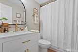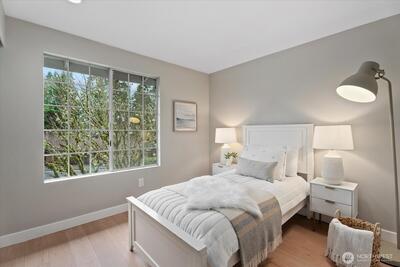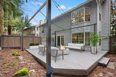 Elevated living awaits in this beautifully updated 3 bedroom, 3 bathroom single family style townhome. This move in ready home features luxury vinyl plank flooring throughout, an updated kitchen with quartz countertops, stylish cabinetry, and stainless steel appliances. A stunning color palette and modern touches carry through every room. The designer inspired updates continue into the bathrooms, and the spacious primary suite offers a huge custom walk in closet and a gorgeous spa like ensuite. All bedrooms are located on the upper level and filled with natural light. Enjoy an open, airy living area with abundant windows and a cozy gas fireplace, plus a large fenced yard and expansive patio backing to a peaceful greenbelt—perfect for quiet mornings or relaxed evenings outdoors. EV charging available. Ideally situated on the Kirkland/Redmond border, this home provides quick access to freeways, major employers, shopping, dining, and everyday conveniences. Pre inspected and ready to cal