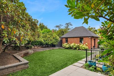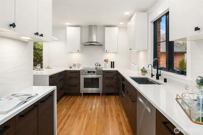 Perched above one of Washington Park’s most sought-after streets, this residence offers an exceptional sense of light, scale, and thoughtful design. Its elevated setting provides both privacy and outlook, while newly opened living spaces create effortless flow for everyday living and entertaining. A fully reimagined kitchen anchors the main level, featuring new appliances and a refined open layout that connects seamlessly to dining and living spaces. Floor-to-ceiling windows and newly added French doors enhance the home’s connection to the outdoors, replacing a former living room window with direct yard access, and introducing French doors at both the front and rear of the dining room to create a true indoor-outdoor living experience. Upstairs, a rare three bedroom en suite layout offers exceptional comfort and privacy, including a light filled primary suite with a generous walk-in closet. The lower level adds versatility with a newly finished basement featuring an additional bedro