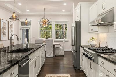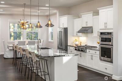 The Westridge community of Issaquah Highlands is one of the newest neighborhoods, just minutes from I-90 for a quick commute to Bellevue, Seattle, and world-class outdoor recreation at Snoqualmie Pass. Like new and loaded with upgrades, this spacious home features a modern layout with 4 sizable bedrooms and 3 baths, including a ¾ bath on the main level. Large, side-by-side 2-car garage includes shop space, custom storage cabinets and professional epoxy floor. Incredible chef’s kitchen features an oversized island, a casual dining area with views of a private greenbelt, high-end stainless steel KitchenAid appliances, and tons of custom storage solutions. Indulgent owner’s suite lives large, with a luxurious 5-piece bath, a large shower, and a finished walk-in closet. A spacious living and dining area with a cozy fireplace leads to a covered front balcony. Zero-scape, low maintenance backyard with covered patio provides privacy and a peaceful space to unwind or entertain. Many thoug