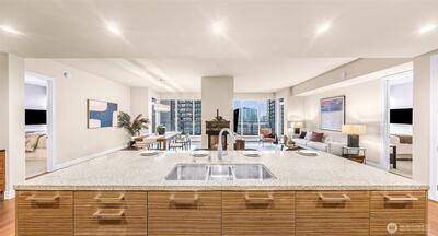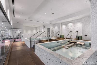 Elevated living at Escala—one of downtown Seattle’s premier luxury residences. A private elevator opens to your own vestibule, leading into nearly 2,000 square feet of refined, thoughtfully designed interiors. A sleek gas fireplace anchors the living, dining, and kitchen spaces, creating warmth and flow for everyday living and cozy Pacific Northwest evenings. Step out to the expansive private balcony for sweeping city views, including a stunning look at the Space Needle. The primary suite is a true retreat with a spacious walk-in closet and a luxurious five-piece bath. A second bedroom with its own full bath sits on the opposite side of the home, offering ideal flexibility for guests, a home office, or media space. Two dedicated parking spaces and a separate storage unit complete the home. Escala residents enjoy 24-hour concierge service and exceptional amenities, including a fitness center with resistance pools and yoga studio, spa treatment rooms, private dining a