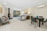 Enjoy amazing West-facing views of the Sound and Olympic mountains from every level of this quality-built, well-maintained, light-filled home located on a quiet, private, dead-end street. Contemporary design with glorious sunsets and sunlit interiors. This multi-level home features 3 levels, each with its own balcony, and an open-flow layout. The large primary suite includes a view deck and en suite bathroom. Enjoy an award-winning, efficient Jøtul propane, free-standing fireplace, along with newer appliances, including a high-end induction range. Additional highlights include heated travertine floors, an Elfa closet system, and updated Milgard sliders. The home is equipped with heat pumps and A/C, skylights, and newer roofs. Wander outside to a quiet, terraced rear yard oasis, with sliders opening to a patio—perfect for morning coffee and hummingbirds. A one-car garage completes the home. Ideally located just a short distance from Alki, the Junction, and beyond. Lovely!