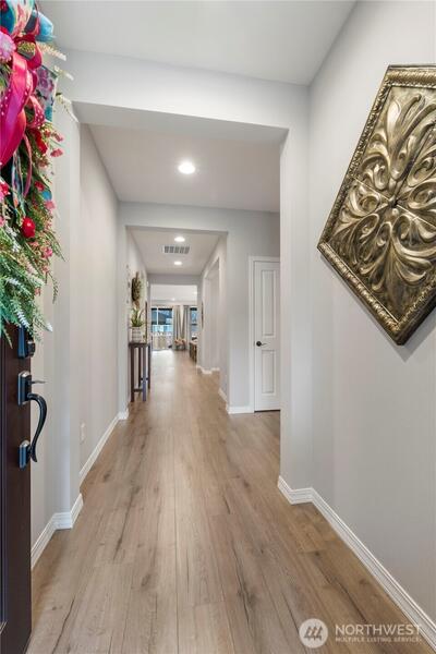 You've earned a lifestyle of comfortable luxury and unmatched amenities, and you deserve that lifestyle to be wrapped in value! This distinctive duplex, with $126K of exciting upgrades brings impressive flair, function and affordability to Trilogy's finest 55+ resort-style community. Majestic Mt Rainier fills the window of the unique junior suite area, and every drive home frames a postcard-worthy vista. Daily strolls are a joy along 40 miles of trails and tree-lined streets, punctuated by 17 parks including off-leash dog areas. At nearly 1,700 square feet, this Valletta plan lives larger than many standalone homes, with dual-wall construction for peace and privacy, plus maintenance and HVAC savings. The chef's kitchen dazzles with a massive island, pull-out shelves, soft-close cabinets and premium GE Café Series appliances with a true double oven. You’ll adore the primo primary suite, dedicated den/office, massive storage and even a beautifully appointed laundry room. EZ maintenanc