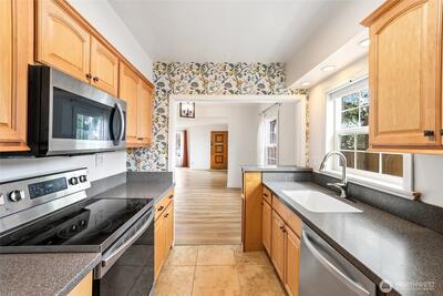 Charming and move-in ready, this darling 4-bedroom home offers space, functionality, and character in all the right places. Enjoy a spacious, fully fenced yard—perfect for pets, play, or summer entertaining—plus a large 2-car garage/shop for all your projects and storage needs. Inside, you’ll find a butler’s kitchen with stainless steel appliances, two beautifully updated bathrooms, and a generous living and dining area ideal for gatherings. New LVP flooring adds a modern touch throughout, and a tankless water heater provides added efficiency and convenience. Take in peek-a-boo views of Mt. Rainier and fall in love with everything this inviting home has to offer. Conveniently located near shopping and freeways, this home combines comfort with accessibility. Don’t miss your chance to make this wonderful home yours!