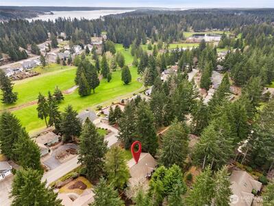 Lakeland Village rambler with a comfortable, functional layout and vaulted ceilings. Spacious living room with propane fireplace opens to a large kitchen featuring abundant counter space and cabinetry. Primary suite plus two guest bedrooms and full guest bath. Enjoy the peaceful and fully fenced backyard from the deck, perfect for entertaining or relaxing. Two-car garage plus dedicated golf cart garage/shop space. Located in the sought-after Lakeland Village community offering a 27-hole PGA golf course, restaurant, tennis and pickleball courts, 50-acre trout-stocked lake, beach, playground, and more. Convenient access to Hwy 3, PSNS, Bangor, and the charming town of Allyn. Welcome home!
