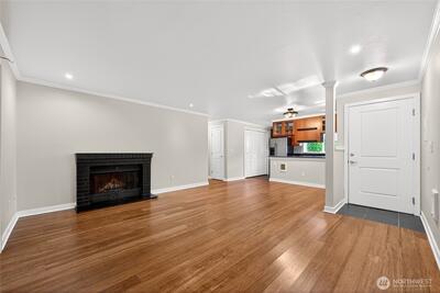 Extremely rare 3 bed/2 bath end unit with 2 parking spaces in wonderful Woodinville! Conveniently located near UW Bothell Campus, wineries, Town Center and restaurants. Quality finishes throughout include beautiful refinished bamboo floors, S/S appliances, granite counters, maple cabinetry and tiled bathrooms. Easy ground floor location, open-concept home offer full primary en-suite, cozy wood burning fireplace, in unit W/D, plus parking for 2(!) drivers (1 covered). Feel like every condo is in a fishbowl on a busy road? Not this one! Enjoy fresh air on your patio in complete privacy facing quiet lush green space or take advantage of ample community amenities: clubhouse, pool, hot tub, sauna, racquetball court and gym! 2 Pets are approved (both cats & dogs). Convenient quick commuting access blocks away to Park & Ride, I-405, & WA-522. HOA is under wonderful management and major work is complete.