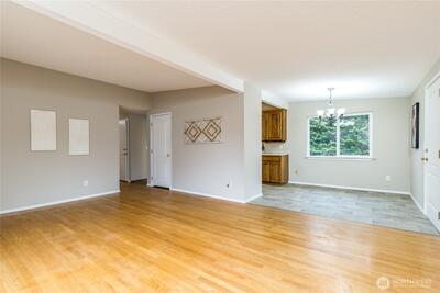 Welcome to this high-potential home in a central Renton location! Offering a functional layout and a spacious lot, this property is a blank canvas ready for your personal touch. The main level features fresh paint, hardwood floors, an updated ¾ bath, a bright living room that connects seamlessly to the dining area, and a kitchen with abundant cabinetry and counter space. The fully finished daylight basement features a large rec room with built-in cabinetry and a slider that opens directly to the backyard. With its own separate entrance, this space is a prime candidate for a Junior ADU or guest suite. Additionally, a large bonus room offers the flexibility needed for a home gym, media room, or hobby space, accompanied by a generous laundry room and a second 3/4 bathroom. Situated on a large lot, the outdoor space is a dream for those looking to expand. There is ample room for a DADU, detached shop, or oversized garage (buyer to verify). An extended shared driveway provides convenient v