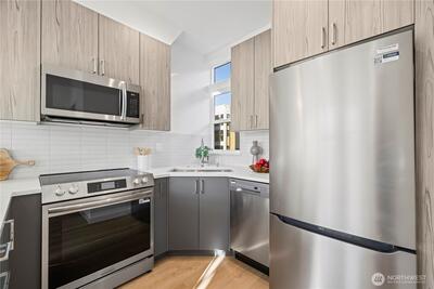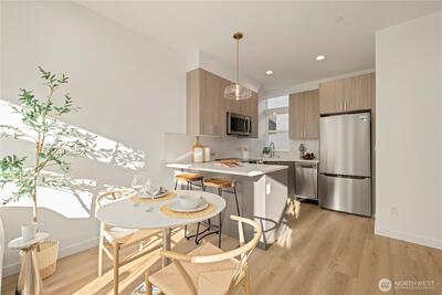 Special Rate of 3.25%* Available | Only 1 of 2 Homes Remaining with EV-Ready Parking. Welcome to Serene by MRN Homes—an exceptional new construction opportunity in the heart of Ballard. Thoughtfully designed for modern living, this home features expansive windows, sun-drenched interiors, and a rare EV-ready parking space: an unmatched value for both homeowners and investors. The open concept main level is anchored by a chef’s kitchen with premium stainless steel appliances, sleek cabinetry, and generous storage. Upstairs, the top-floor primary suite offers a private retreat with a spa-inspired bath and ample closet space. A lower-level ensuite bedroom provides flexibility for guests, rental potential, or a dedicated home office. A full-size rooftop deck with water and power extends your living space outdoors—perfect for entertaining or taking in Ballard’s iconic setting. Located just minutes from Golden Gardens, the Ballard Farmers Market, top-rated dining, and boutique shoppin