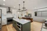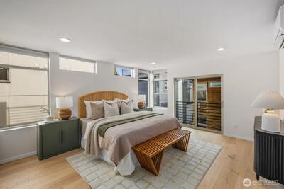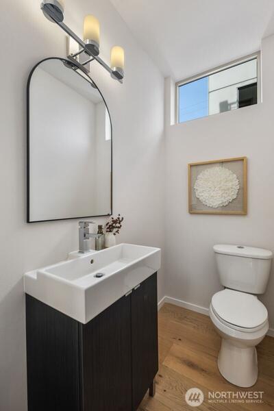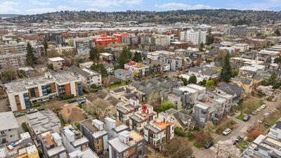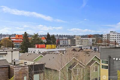 Experience modern urban living in this beautifully updated 2017 stand alone townhome offering 3 bedrooms + office/nursery, 2.5 baths with 1,923 sq ft of thoughtfully designed space. The main level welcomes you with a bright, open-concept layout featuring spacious living and dining areas, new hardwood flooring, and a chef's kitchen with quartz countertops, stainless steel appliances, and a striking center island perfect for entertaining. Upstairs, retreat to the primary suite with a spa-inspired bath, dual vanities, and a generous walk-in closet. An additional flexible room on this level makes an ideal home office, nursery, or lounge, while a full laundry room on the same floor adds everyday ease. The ground floor includes two additional bedrooms and a full bath, providing privacy and versatility for guests or roommates. Take entertaining to the next level on the rooftop deck with views of Mount Rainier and the Cascades, perfect for sunset gatherings, al fresco dining, or starga