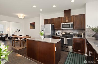 Beautiful West Seattle townhome in the sought-after High Point neighborhood, one of Seattle’s most innovative green communities with parks, trails, and open space throughout. This thoughtfully designed home features an open concept kitchen, dining, and living space with quartz countertops, stainless appliances, and large windows bringing in abundant natural light. The layout includes two spacious primary suites upstairs, each with its own ensuite bath and large closets. The versatile entry-level flex space is ideal for a home office, guest room, workout space, or studio. Additional highlights include a private one-car garage with EV charger, generous storage, and new hardwood stairs and flooring updates. Enjoy a quiet location within the community while remaining minutes from Alaska Junction, Morgan Junction, Westwood Village, restaurants, grocery stores, and the West Seattle Farmers Market. High Point residents love the 20+ acres of parks, playgrounds, trails, and green space, along