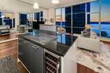 Penthouse Style luxury from this 23rd floor NW corner Jewel box! Near 1250 sqft -1bd plus large den. Soaring 11 foot floor to ceiling windows wrap this private sub penthouse home. Dream remodel, enjoy over 100k of designer upgrades, new wide plank floors, cook with a view-custom island designed with new wolf induction cook top, discreet pop up fan & sleek beverage center. Top of the line appliances, subzero, new LED lighting in kitchen above & below cabinets new designer lighting in dining area, new kitchen granite, sink & faucet, new Bosh dishwasher. Home has A/C . World class building, 24story, 126 homes, only 6 per floor, LEED Gold, steel & concrete. 5star location, mins to stadiums, I5, light rail, hospitals, court house. 1 parking- 1 storage. Be sure to visit 2nd floor amenities, owners lounge with roof deck, guest suite, fitness center & pet relief. Great HOA with healthy reserves! No rent cap.
