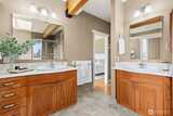 Perched above breathtaking panoramic views of the Cedar River Watershed and Cascade Mountains in this one-of-a-kind custom mountain retreat. Blending modern Craftsman style with the warmth and character of the Pacific Northwest, this home offers a peaceful, elevated setting with spaces designed for both everyday comfort and memorable gatherings. The main-floor primary suite offers a private retreat, complete with an En suite and walk-in closet. The heart of the home is the custom designed chef’s kitchen, featuring expansive granite counters, 15-inch deep frameless Brazilian cherry cabinetry, built-in KitchenAid refrigerator, double oven, and generous workspace for cooking, baking, and entertaining. Throughout the home, 9-foot and vaulted ceilings create an open, airy feel, while 75-year-old reclaimed open beams add rich texture and timeless charm. Upstairs, the spacious bonus room, elevated gym, and separate media/flex room offer room to spread out, relax, work, or play. Above the ga